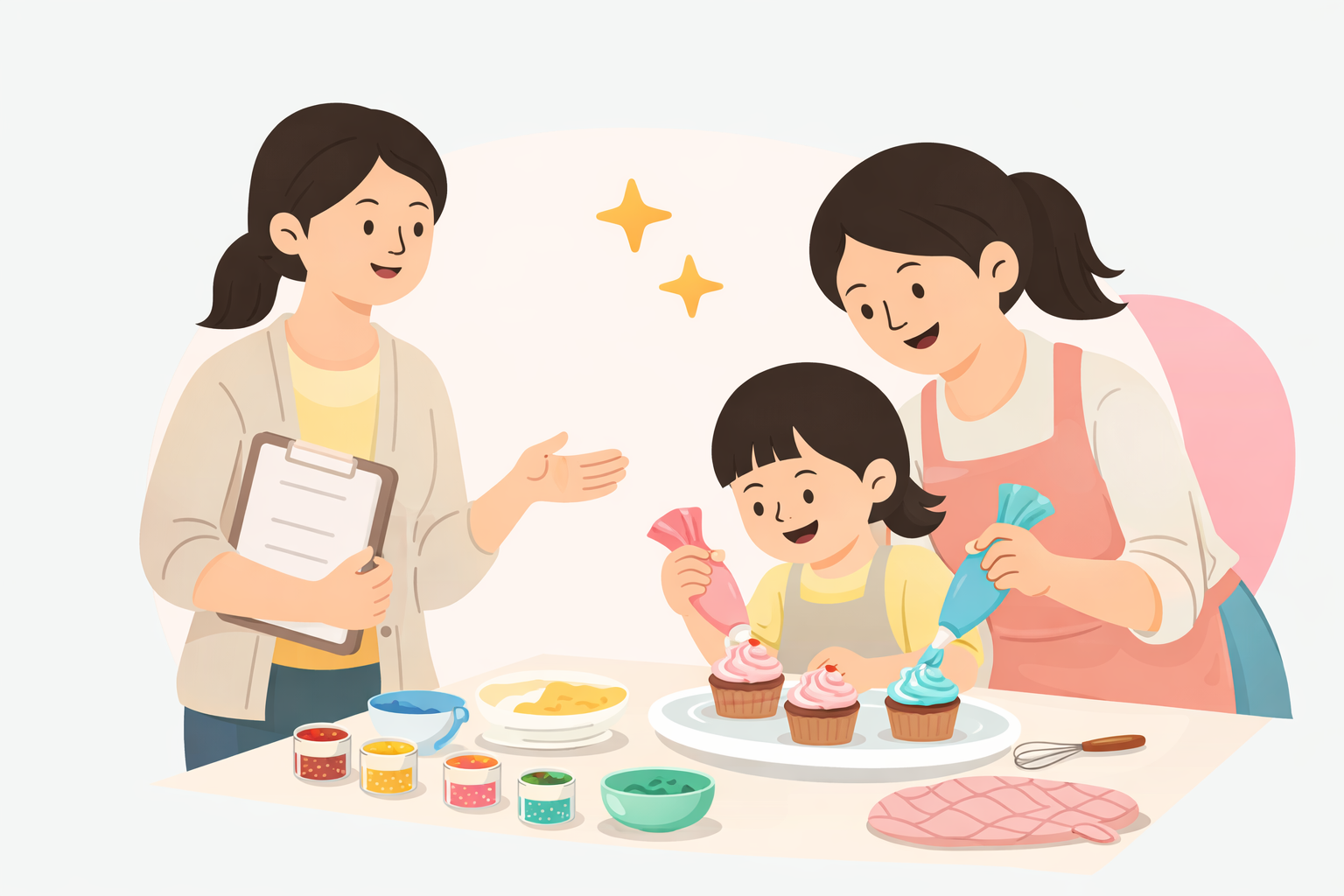 Sessions are guided by experienced facilitators who support both parent and child through each step of the baking process.